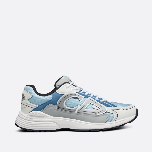 La zapatilla B30 Countdown de DIOR es un modelo de caña baja con un diseño moderno y deportivo, elaborado en tejido técnico de malla blanca combinado con tejido técnico en tono sobre tono. Destaca por sus detalles reflectantes CD30 en los laterales y la parte trasera, así como las firmas Dior B30 y CD30 plateadas en la lengüeta y el talón. Cuenta con cierre de cordones, suela de goma esculpida ultraligera en blanco con borde negro que incorpora las firmas Dior, CD30 y B30, y construcción soldada para mayor durabilidad. El interior elástico ofrece comodidad óptima y el forro combina tejido técnico de malla con vaqueta. Incluye funda protectora y un par adicional de cordones blancos. Fabricada en Italia, esta sneaker es ideal para completar looks casuales con estilo.